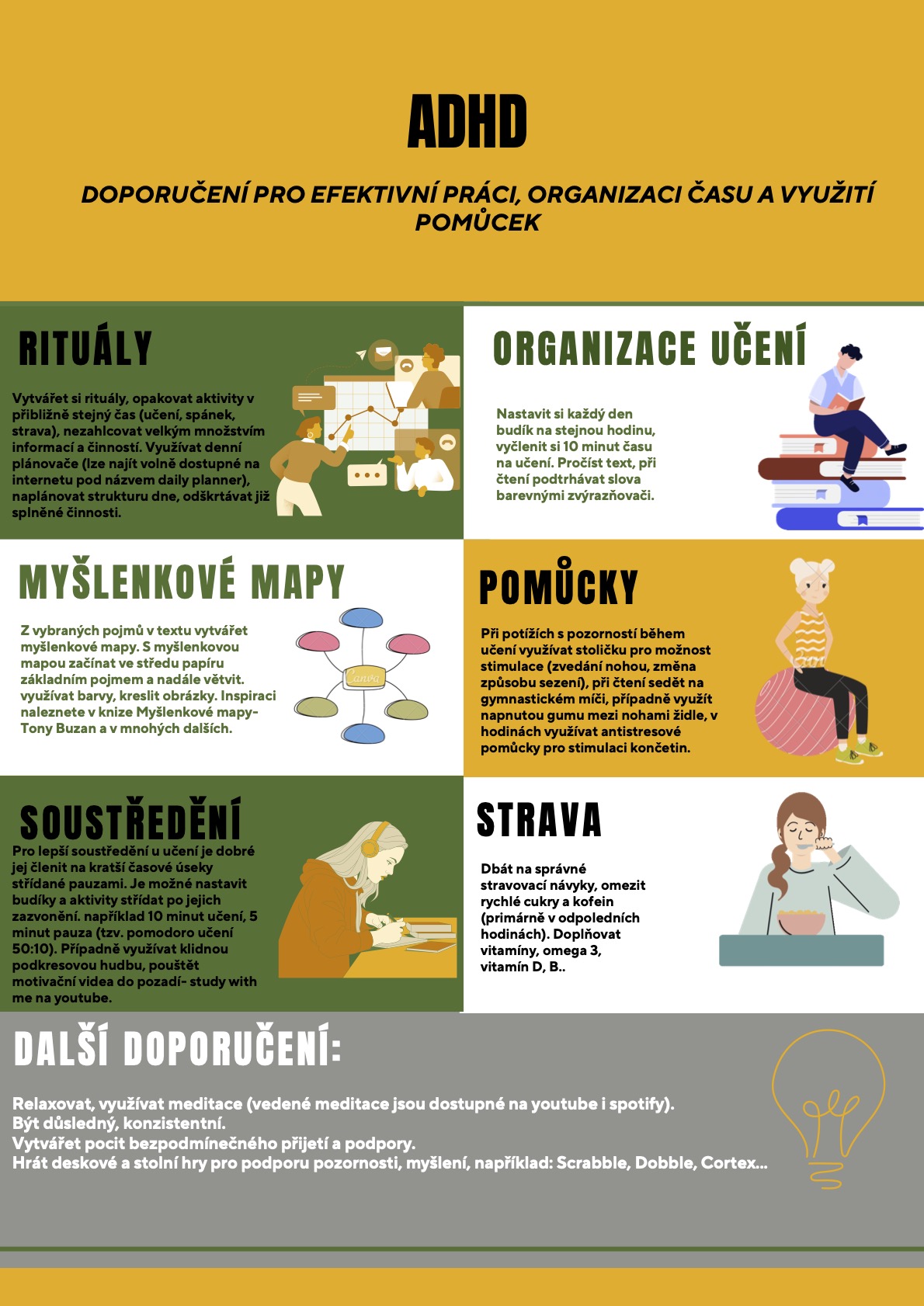 Máte dítě s ADHD, nebo jste sami studentem s poruchou a pozornosti a nevíte si rady? Pojďme se podívat na pár základních tipů a důležitých bodů, o kterých byste měli vědět. Zmíněná doporučení se týkají primárně poruchy pozornosti v kombinaci s hyperaktivitou, avšak mnoho z nich je možné využít i u hypoaktivního typu.